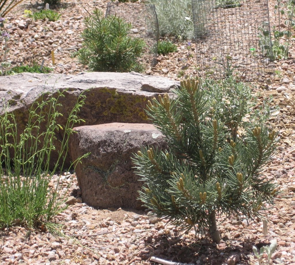 Piñon is already a slow growing tree, especially the monophylla species, with mature individuals adding only 2 to 4 inches a year in height. Dwarf piñon cultivars will add just 1 to 2 inches annually. Combining witches’ brooms native to the Rocky Mountains with local Colorado rootstock makes them perfect for our Santa Fe climate. Like normal piñons they are cold hardy and enjoy full sun, loamy or sandy well-draining soil and can be long lived. Dwarfs often form dense tight mounds making them even more drought resistant. They make excellent additions to rock gardens, planter boxes and small beds. When planting, dig a very wide hole and mix a little compost in with the backfill. Water every week or two until established after two growing seasons but don’t overwater which may encourage faster growth.